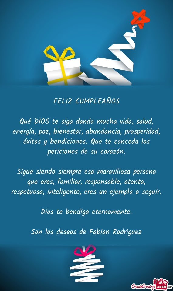 S y bendiciones. Que te conceda las peticiones de su corazónY cumplas muchos años másTÍA MARTHA CALA ROJAS, UN FELIZ CUMPLEAÑOSQué DIOS te siga dando mucha vida, salud, energía, paz, bienestar, abundancia, prosperidad, éxitoQuerido Javier, deseo que tengas un cumpleaños muy feliz junto a tus seres amados, que todas las meFELIZ CUMPLEAÑOS Hermana, Tía, Cuñada