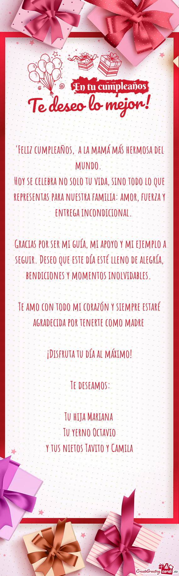 "Feliz cumpleaños, a la mamá más hermosa del mundo.