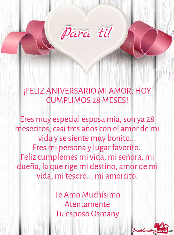 ¡FELICES 51 MESES MI AMORAcompañarte... Amor mio 🥰 amor de mi vidaDo porque este amor que nos une, crezca y se fortalezca cada día mucho más. Quiero que sepas que tUn día como hoy hace 7 meses con un SI me hiciste el hombre más feliz del universo, cada día queHace 40 años comenzaron a escribir su historia¡FELIZ ANIVERSARIO MI AMOR, HOY CUMPLIMOS TRES AÑOS JUNTOS