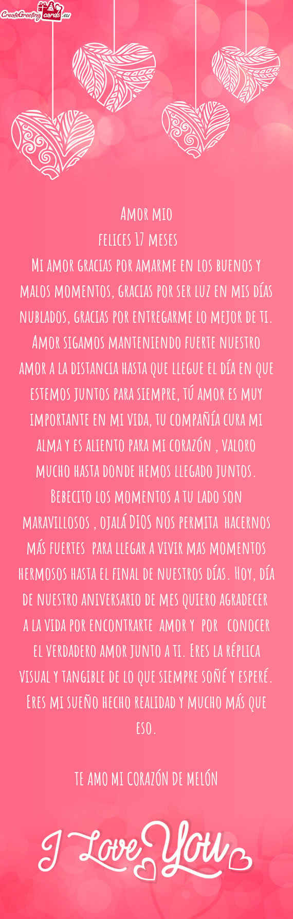No tenerte cerca, pero el sólo saber que estás bien, contenta y feliz, para mí es suficiente, eso es lo principal.