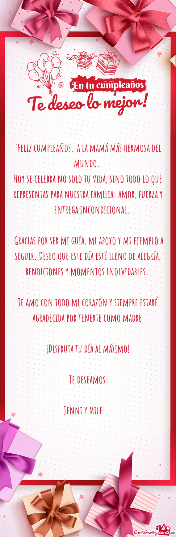 En este día especial deseo que reciba todo el amor y la alegría que merece.Es una persona muy quer