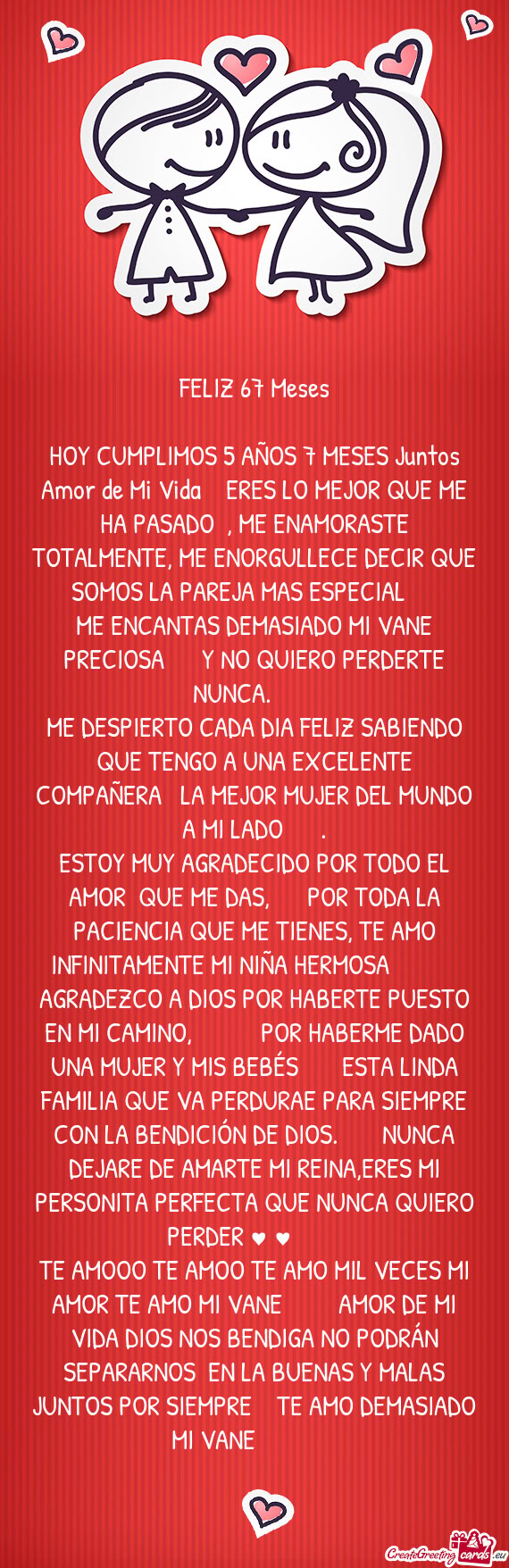 Cielo mío, eres la mejor manera y la más perfecta que encontró la vida para demostrarme que hay bendiciones que nos llegan en forma de personas, eres el más claro ejemplo, por eso eres el amor de mi alma, el más hermoso regalo que la vida me ha podido dar.