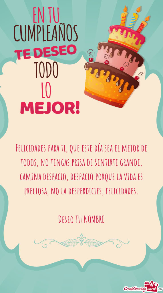 QUE ESTE AÑO SEAS LA PERSONA MAS FELIZ DEL MUNDO PAPÁ, PORQUE NO HAY NADIE QUE SE LO MEREZCA MÁS QUE TU...