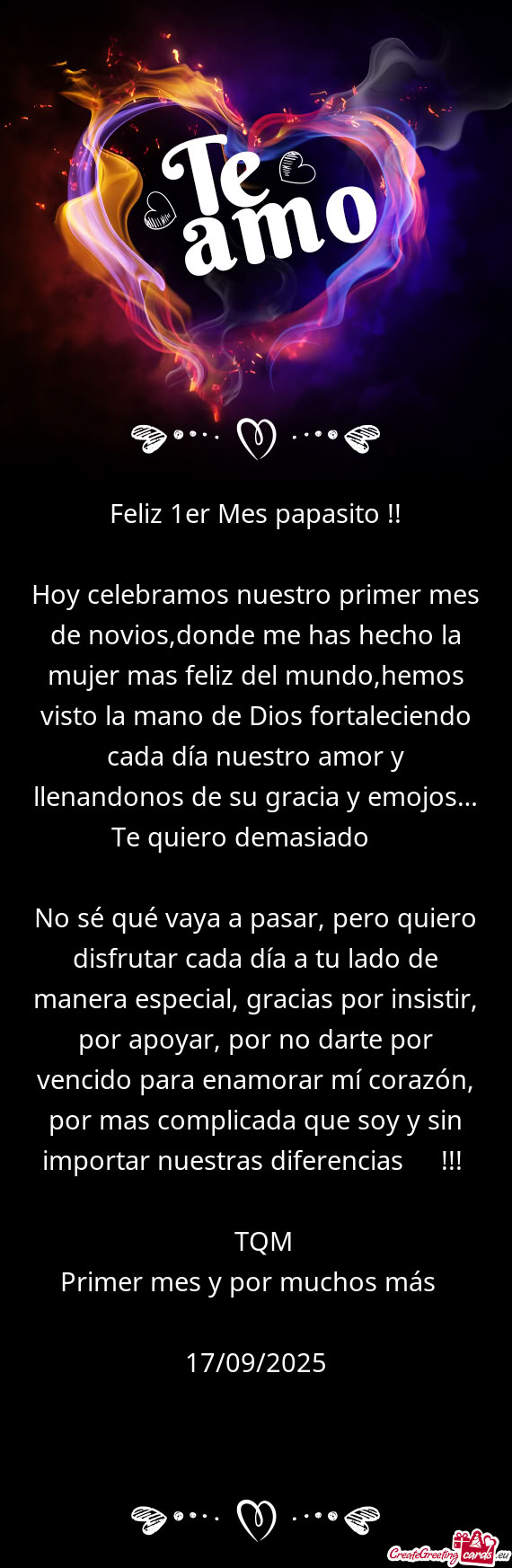 Hace 1 mes comenzamos esta hermosa relación, donde de verdad que he sido super feliz. Cada día siempre has estado ahi para sacarme una sonrisa y eso te lo agradezco muchito.gracias por llegar a mi vida te amo y te quiero muchísimo mi niña preciosa estoy super feliz por tenerte conmigo ❤️❤️te amo Daniela eres lo mejor que me a pasado pasado estar contigo me ase sentir bien ❤️❤️