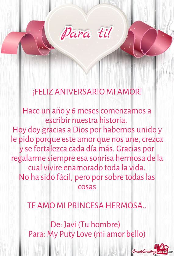 Hace 17 años comenzamos a escribir nuestra historia. Hoy doy gracias a Dios por habernos unido y pido porque este amor que nos une, crezca y se fortalezca cada día mucho más. No ha sido fácil, pero por sobre todas las cosas